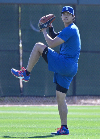 米大リーグ、ドジャースの大谷(写真)と山本、佐々木が9日、アリゾナ州グレンデールの球団施設で自主トレーニングを行った。キャンプは13日に投手と捕手のバッテリー組が初日を迎える。 【時事通信社】